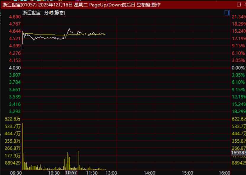 其他大幅波動的港股中,浙江世寶港股一度大漲逾20%,佑駕創(chuàng)新一度大漲逾13%。