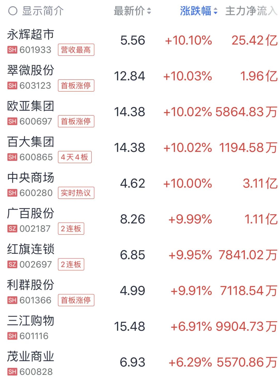 此外,商貿(mào)零售板塊也逆勢走強,板塊內(nèi)個股掀漲停潮。