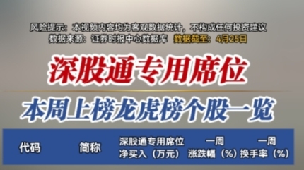 深股通專用席位本周上榜龍虎榜個股一覽 #