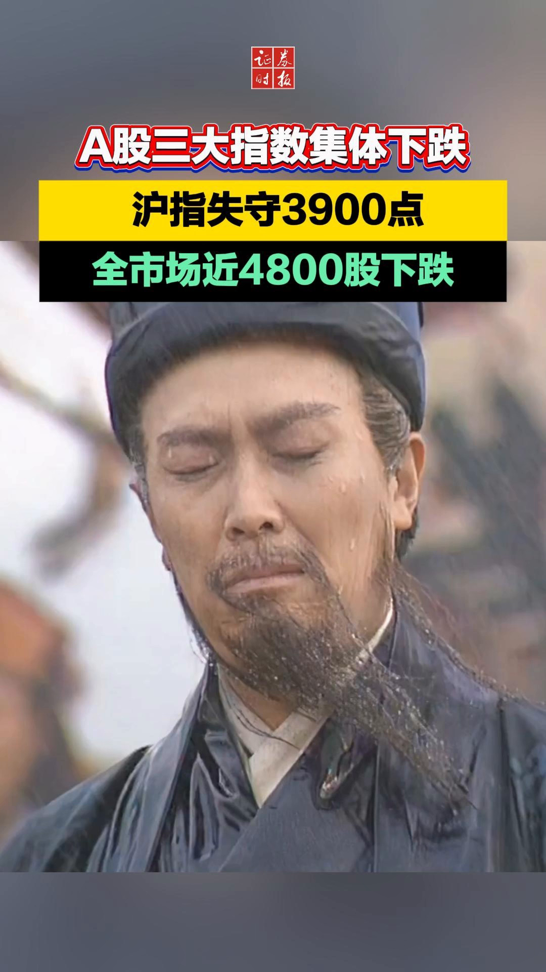 A股三大指數(shù)集體下跌,滬指失守3900點(diǎn),全市場(chǎng)近4800股下跌