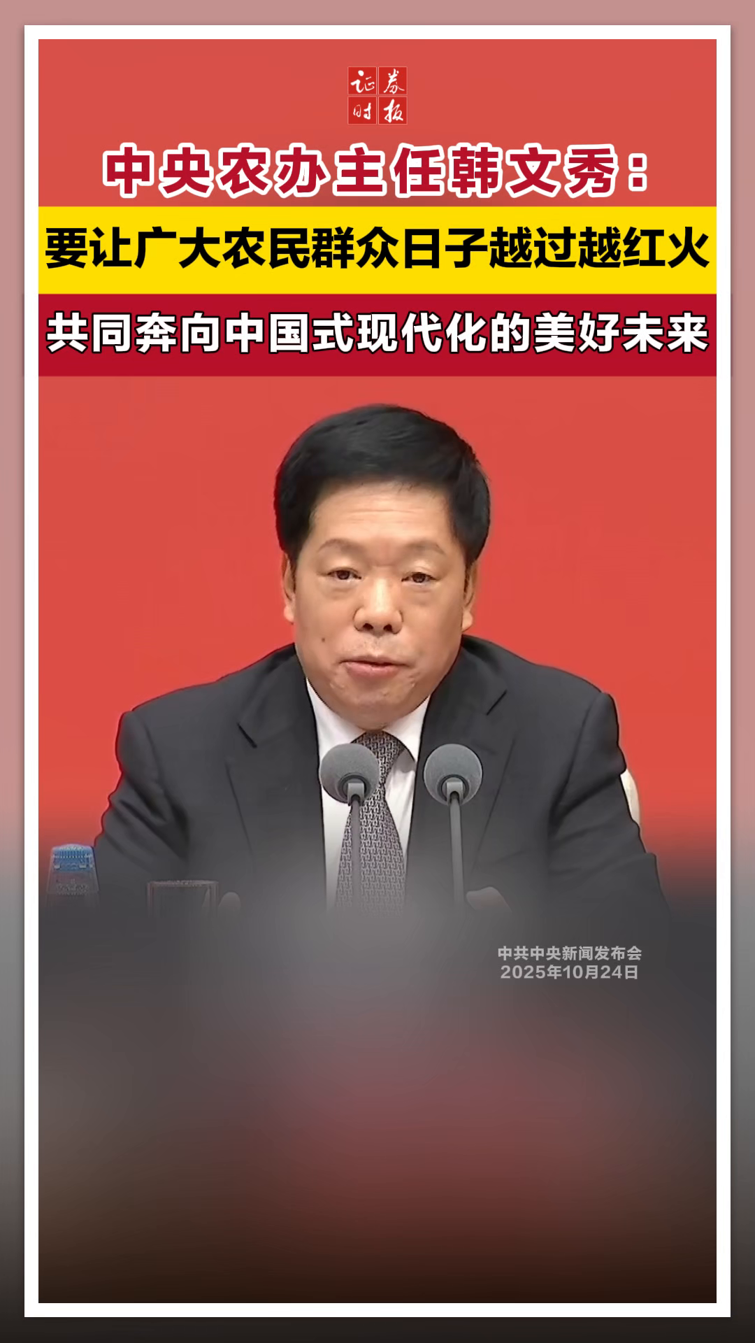 中央農(nóng)辦主任 韓文秀:要讓廣大農(nóng)民群眾日子越過越紅火 共同奔向中國式現(xiàn)代化的美好未來