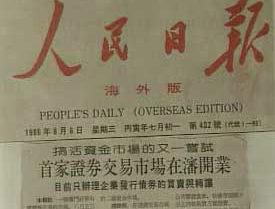 1986年,人民日?qǐng)?bào)報(bào)道沈陽(yáng)開(kāi)辦證券交易部消息