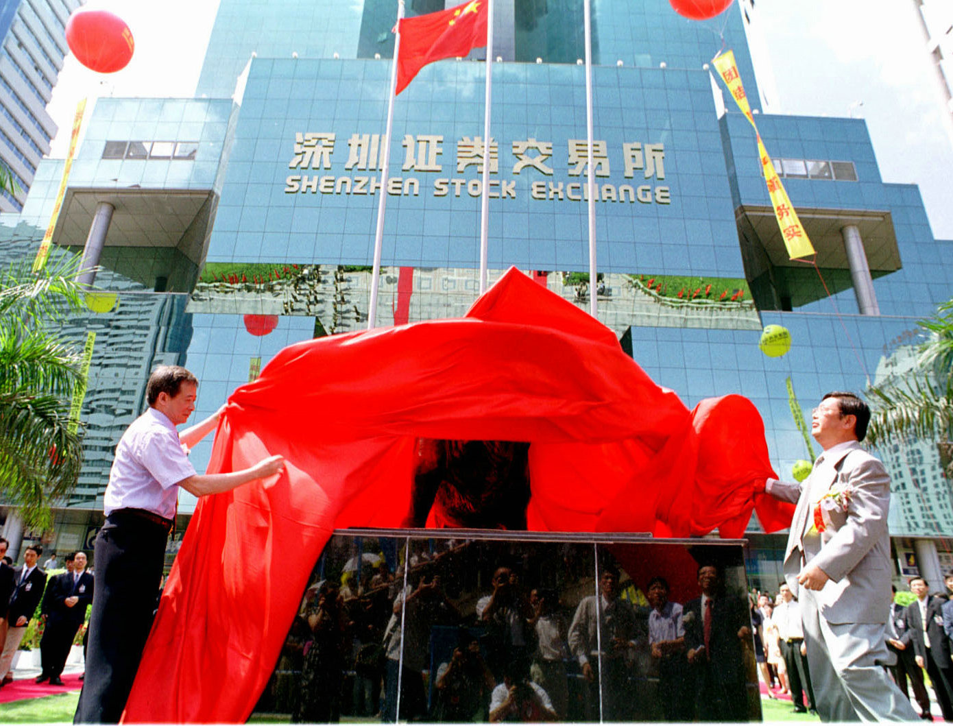 1998年7月16日, 深圳證券交易所新大樓正式啟用,嘉賓為門前的銅牛揭幕。