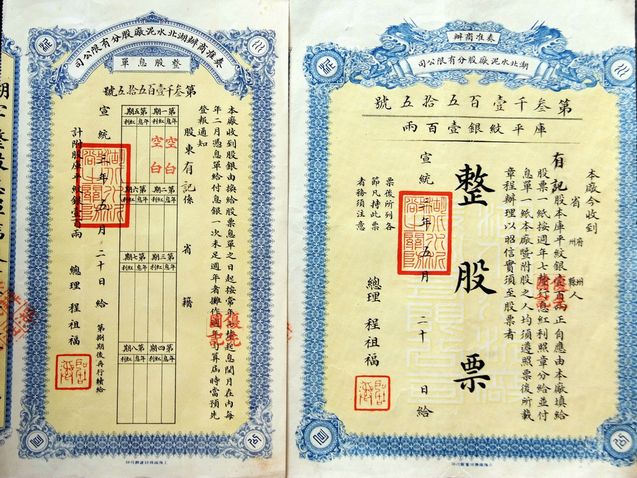 1911年,華新水泥原始股憑證?!?/p>