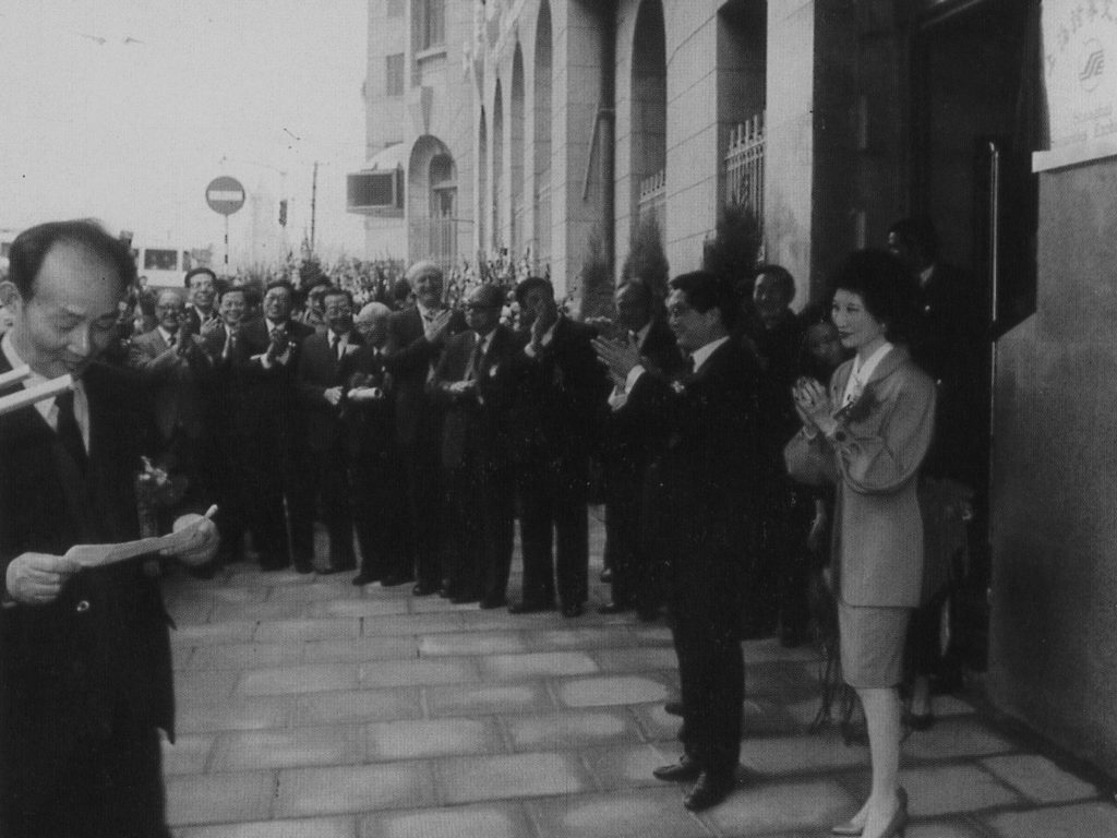 1990年12月19日,新中國(guó)成立后的第一家證券交易所——上海證券交易所正式鳴鑼開(kāi)業(yè)。朱镕基出席了開(kāi)業(yè)典禮。前排左起:汪道涵、香港貿(mào)發(fā)局主席鄧蓮如女士、朱镕基、黃菊、劉鴻儒。后排左一周道炯。