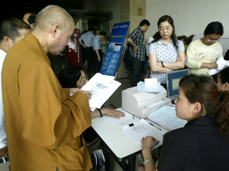 2007年,股市不斷上漲,年內(nèi)達(dá)到A股歷史最高點(diǎn)6124點(diǎn)。上漲的行情刺激著人們?nèi)胧械臒崆?。此?007年5月8日,在西安市小南門外一家證券交易大廳內(nèi)人流涌動(dòng),一位僧人拿著“自然人客戶證券交易協(xié)議書(shū)”等資料,在柜臺(tái)前辦理相關(guān)開(kāi)戶手續(xù)。