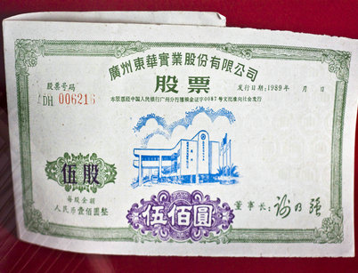 1989年發(fā)行的廣州東華實(shí)業(yè)股份有限公司股票。