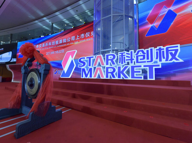 ?2019年7月22日,科創(chuàng)板首次上市儀式上海證券交易所舉行