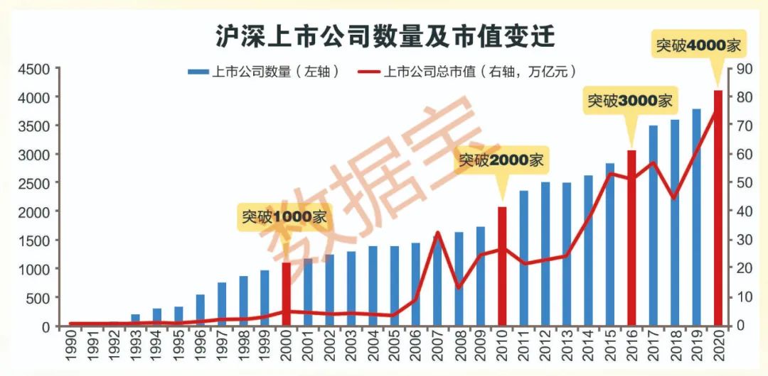 “十三五”以來,滬深兩市上市公司數(shù)量跨越3000、4000兩個(gè)千級門檻,相比資本市場建立初期10年上市1000家的進(jìn)度,A股擴(kuò)容速度顯著提升,資本市場日益繁榮。