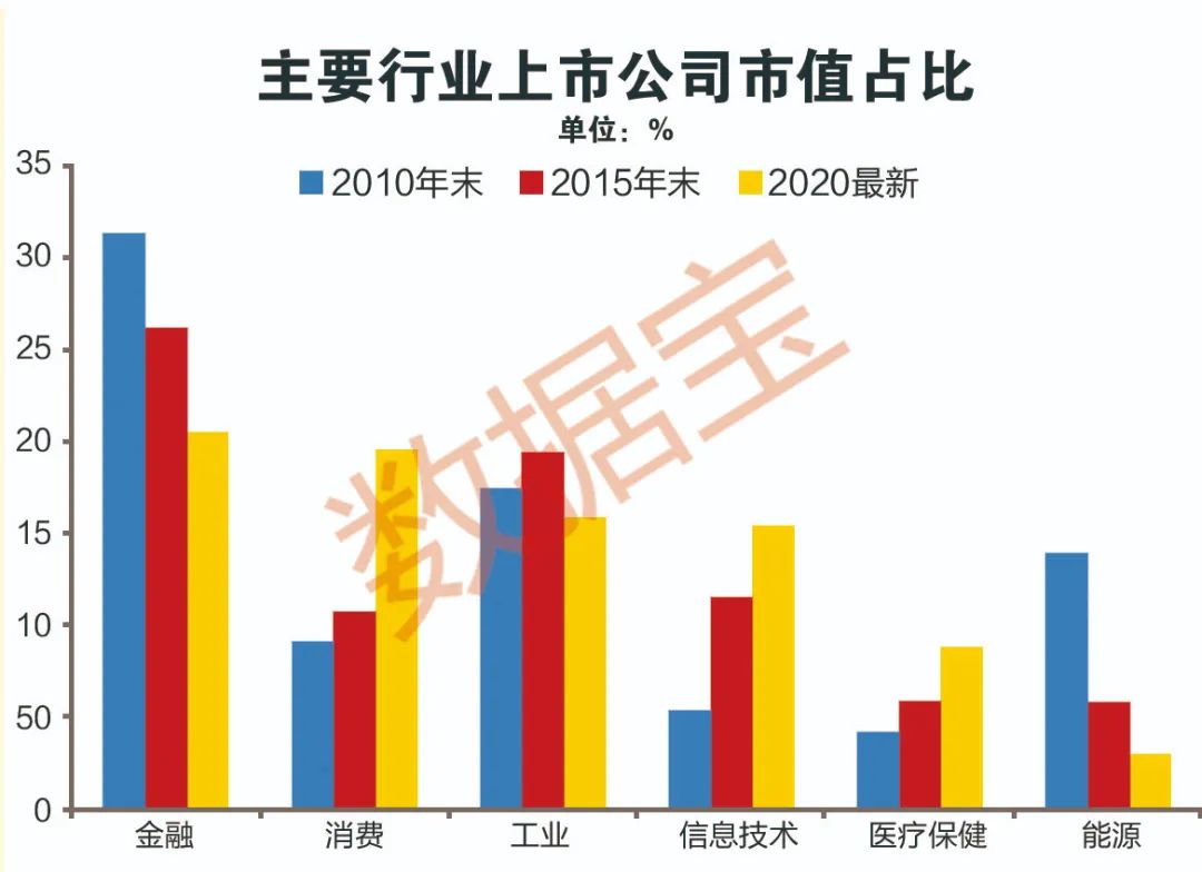 從市值分布來看,當(dāng)前信息技術(shù)行業(yè)上市公司市值占A股總市值的15.39%,較2010年提升超10個(gè)百分點(diǎn);與此同時(shí),金融、能源類公司在A股權(quán)重均下降超10個(gè)百分點(diǎn),資本市場成中國產(chǎn)業(yè)升級主戰(zhàn)場。