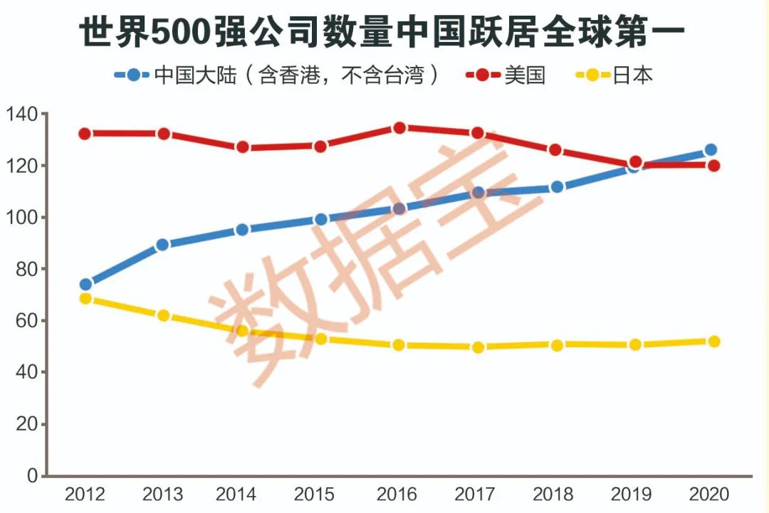 2020年共有124家中國公司(含香港,不含臺灣)上榜《財(cái)富》世界500強(qiáng),公司數(shù)量首次超越美國問鼎全球。124家公司中,在A股上市或部分上市的公司超過70家,占比近六成,優(yōu)質(zhì)上市公司成為中國企業(yè)對外展示的“中國名片”。