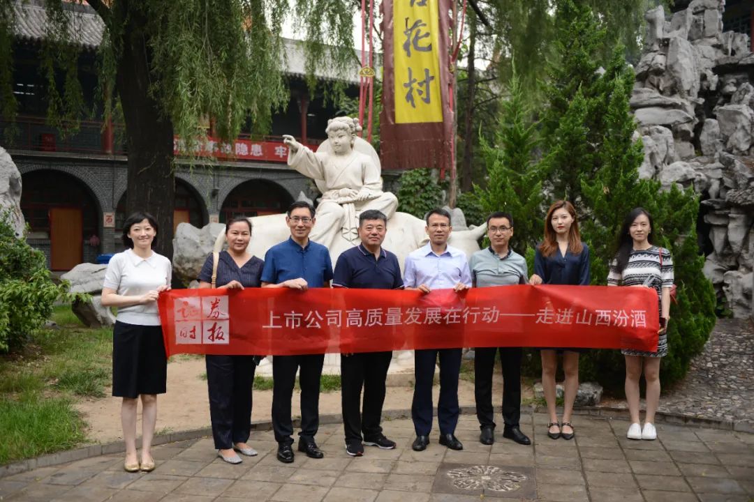 證券時報財經(jīng)傳媒集團采訪團走進山西杏花村汾酒廠股份有限公司進行專訪。圖為采訪團成員合影。魏崢/攝